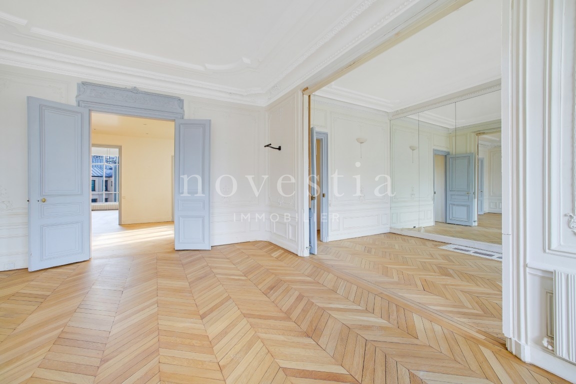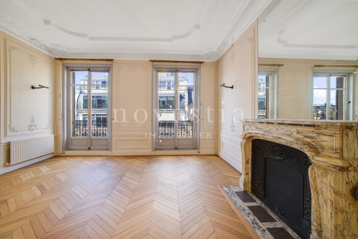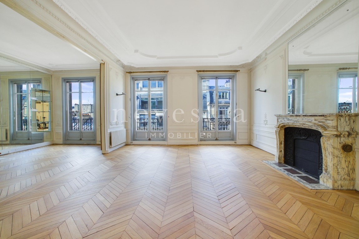 EXCLUSIVITÉ - PARIS VIII - QUARTIER SAINT-PHILIPPE-DU-ROULE - RUE LA BOÉTIE - Au dernier étage noble d’un bel immeuble haussmannien équipé d’un ascenseur, nous vous proposons un magnifique appartement de 225 m² doté d’un long balcon filant. Ce bien comprend un hall d’entrée, un double séjour de 48 m² donnant sur le balcon de 16.70 m², une salle à manger, une cuisine, quatre chambres, une salle de bains indépendante, deux salles d’eau (dont une avec WC) ainsi que des WC indépendants. Appartement très lumineux et traversant avec tout le charme de l'ancien, parquet en point de Hongrie, moulures, cheminées et 3.25 m de hauteur sous plafond. Appartement à rénover entièrement. Une double cave saine de 34 m² complète ce bien. Gardienne à demeure. Transports et commerces à proximité immédiate.