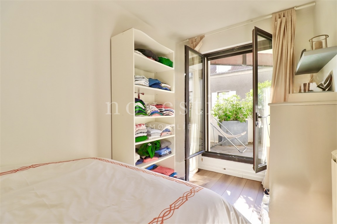 BOULOGNE-BILLANCOURT - QUARTIER PARCHAMP-ALBERT KAHN - Au 1er étage d'un immeuble récent équipé d'un ascenseur, nous vous proposons un appartement de 29,20 m² avec une terrasse de 11 m². Ce bien comprend une entrée avec placard, un séjour donnant sur une terrasse exposée plein sud, un espace cuisine, une chambre ayant également son accès à la terrasse, ainsi qu'une salle de bains avec WC. Terrasse de plain-pied, parquet et rangements. Une cave au sous-sol complète ce bien. Gardien dans l'immeuble. Commerces et transports à proximité.