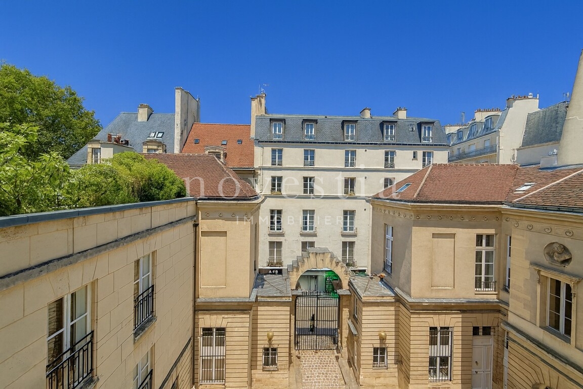 EXCLUSIVITÉ - PARIS 3 - QUARTIER MARAIS - RUE DU PARC ROYAL - Au sein d'une belle copropriété de standing, au troisième étage d'un immeuble modernisé dans les années 1980 avec gardien et ascenseur, NOVESTIA IMMOBILIER vous propose un appartement de 93,06 m² Carrez (93,51 m² au sol). Il comprend : une entrée, un double séjour donnant sur une cour d'honneur, une cuisine dinatoire, une chambre, une salle de douche avec WC, ainsi que des WC séparés. Possibilité de réaménager le plan en deux chambres. Appartement exposé sud, lumineux, calme, bénéficiant de double vitrage et de nombreux rangements. Une cave complète ce bien. Possibilité de parking dans la copropriété.