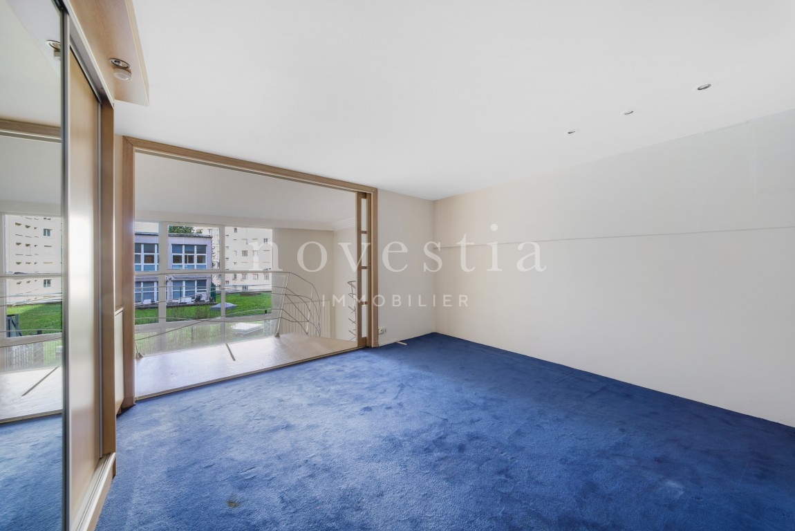 PARIS 19E - DANS LE QUARTIER DES BUTTES CHAUMONT - À QUELQUES PAS DU QUARTIER DE LA MOUZAÏA - Au premier étage d'un immeuble semi-récent très bien entretenue, un loft en duplex de 150 m² au sol (146.93 m² Carrez) donnant sur une terrasse de 37 m². Ce bien hors normes comprend une entrée, un vaste double séjour de 66m² exposé plein ouest avec une hauteur sous plafond de 5.20 mètres et bénéficiant d'une fenêtre magistrale style atelier d'artiste et d'un accès à une terrasse ensoleillée donnant sur un jardin, une cuisine américaine, ainsi qu'un wc invités. À l'étage se trouvent deux chambres dont la première avec une vaste salle de bains équipée de wc, la seconde avec sa salle d'eau également équipée de WC, ainsi qu'un grand dressing indépendant. Appartement exceptionnel, avec du parquet, du double vitrage, sans vis-à-vis immédiat, et de nombreux rangements. Transports à proximité. Gardienne. En supplément du prix : Une double place de parking dans l'immeuble au prix de 31.200€ FAI.