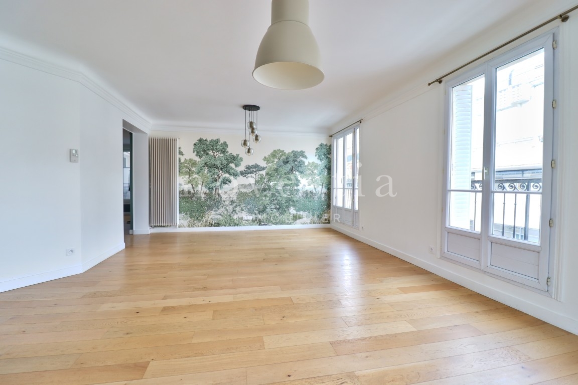 PARIS XVII - ENTRE LA RUE DE COURCELLES ET LA RUE DE PRONY - Au 5e et 6e étage d’un immeuble en pierre de taille équipé d’un ascenseur, nous vous proposons un très bel appartement de 126,43 m² Loi Carrez avec un balcon filant. Cet appartement comprend au premier niveau, une entrée, un double séjour donnant sur le balcon, une cuisine indépendante, trois chambres dont deux ayant un accès au balcon, une salle de bains avec WC ainsi qu'un WC séparé. Au second niveau, une chambre et sa salle d'eau donnant sur deux balcons. Appartement entièrement rénové en 2022, parquet, cheminée et vue dégagée. Une cave complète ce bien. À proximité immédiate du parc Monceau, de la rue de Courcelles et de ses nombreux commerces ainsi que des transports. Sectorisation Carnot.