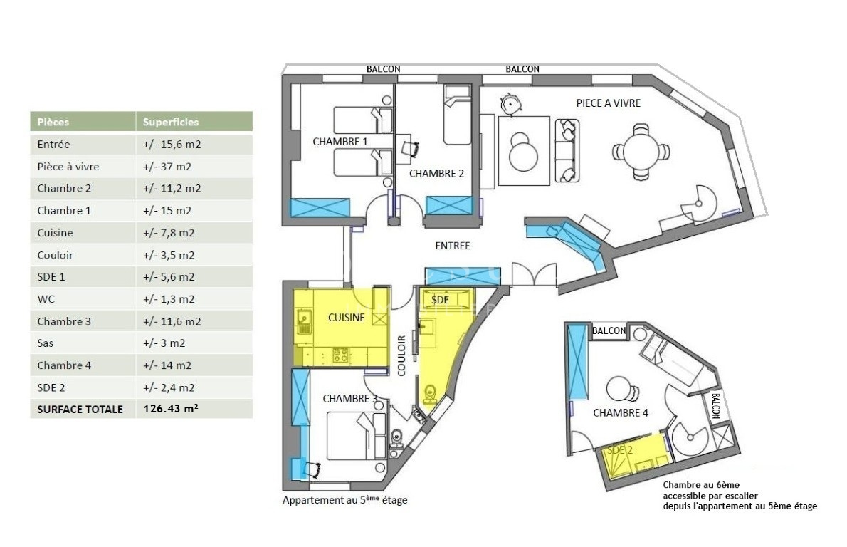 Surface au sol : 126.43 m2