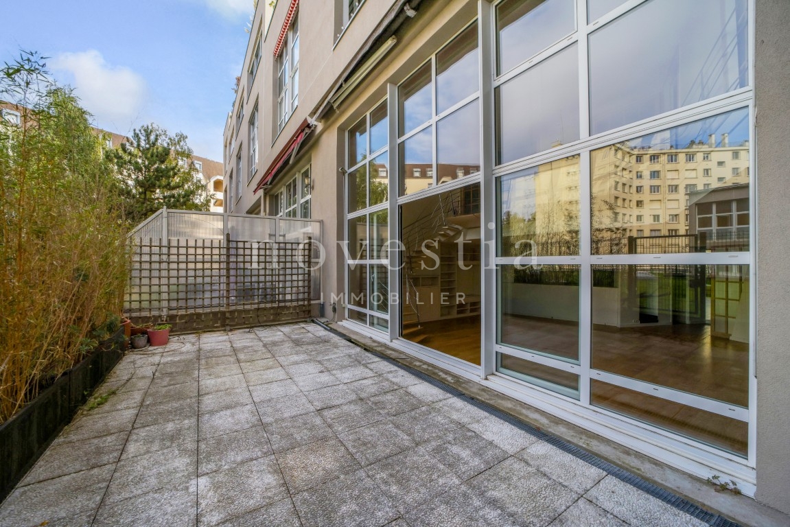PARIS 19E - DANS LE QUARTIER DES BUTTES CHAUMONT - À QUELQUES PAS DU QUARTIER DE LA MOUZAÏA - Au premier étage d'un immeuble semi-récent très bien entretenue, un loft en duplex de 150 m² au sol (146.93 m² Carrez) donnant sur une terrasse de 37 m². Ce bien hors normes comprend une entrée, un vaste double séjour de 66m² exposé plein ouest avec une hauteur sous plafond de 5.20 mètres et bénéficiant d'une fenêtre magistrale style atelier d'artiste et d'un accès à une terrasse ensoleillée donnant sur un jardin, une cuisine américaine, ainsi qu'un wc invités. À l'étage se trouvent deux chambres dont la première avec une vaste salle de bains équipée de wc, la seconde avec sa salle d'eau également équipée de WC, ainsi qu'un grand dressing indépendant. Appartement exceptionnel, avec du parquet, du double vitrage, sans vis-à-vis immédiat, et de nombreux rangements. Transports à proximité. Gardienne. En supplément du prix : Une double place de parking dans l'immeuble au prix de 31.200€ FAI.