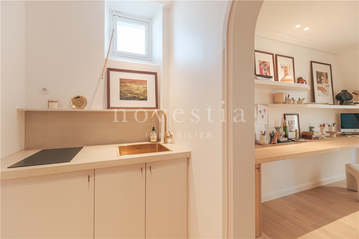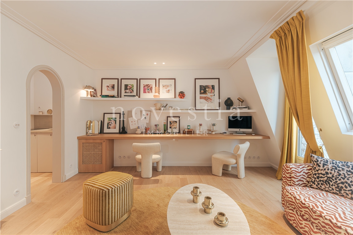 PARIS 7e – GROS-CAILLOU / INVALIDES / RUE SAINT DOMINIQUE – Au cœur de l’un des quartiers les plus prisés du 7ᵉ arrondissement, à proximité immédiate de la rue Cler et des Invalides, élégant studio entièrement rénové situé au dernier étage avec ascenseur d’un immeuble sécurisé avec gardien. D’une surface de 29,39 m² au sol (26,60 m² loi Carrez), ce bien lumineux exposé plein Sud séduit par la qualité de sa rénovation signée architecte, ses prestations haut de gamme et son optimisation parfaite des espaces. Il se compose d’une agréable pièce de vie baignée de lumière avec cuisine indépendante entièrement meublée et équipée, ainsi que d’une salle d’eau avec WC. Les matériaux nobles et les finitions contemporaines donnent à l’ensemble une atmosphère élégante et chaleureuse. Emplacements prévus pour lave-linge et lave-vaisselle. Idéal pour un pied-à-terre parisien, un premier achat ou un investissement patrimonial, ce bien rare bénéficie d’un environnement calme, résidentiel et sécurisé, à deux pas des commerces recherchés du quartier. Copropriété de 49 lots. Charges annuelles : 1 338 €. Transports : Métro La Tour-Maubourg (ligne 8) à 300 m, RER C Pont de l’Alma à 800 m, nombreux bus.
