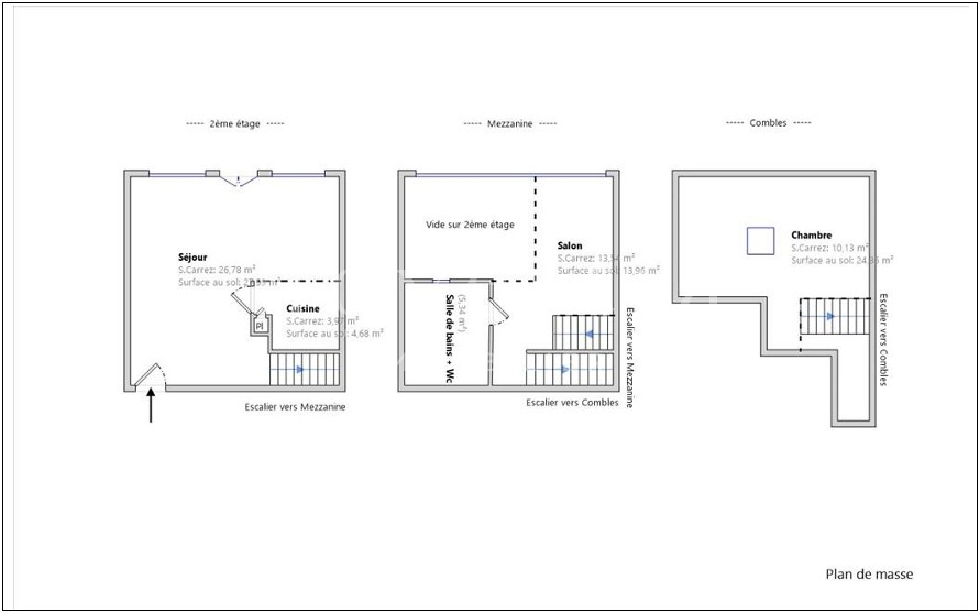 Il se compose d’un vaste séjour cathédral avec espace salle à manger, d’une cuisine semi-ouverte, d’une mezzanine pouvant accueillir chambre, bureau ou coin TV, avec salle de bains, WC et dressing, et enfin, au dernier niveau, d’une chambre mansardée, seule sur son étage, bénéficiant d’une belle luminosité grâce à une large fenêtre de toit.