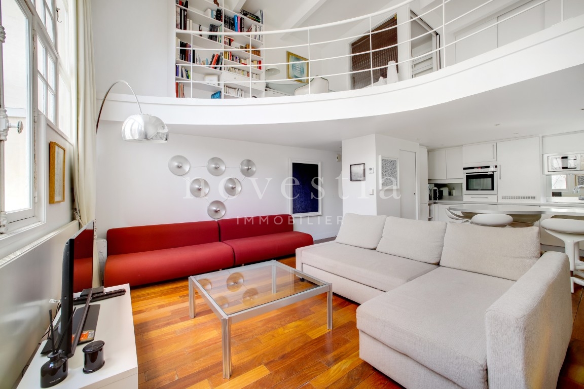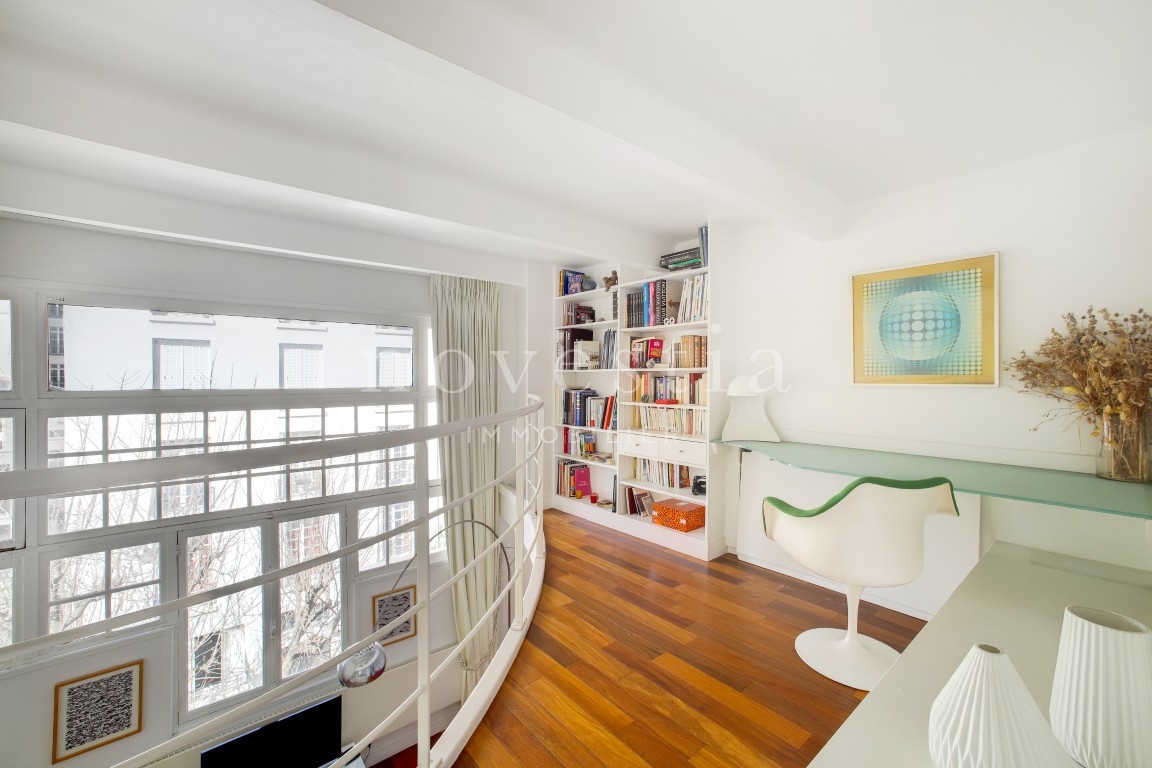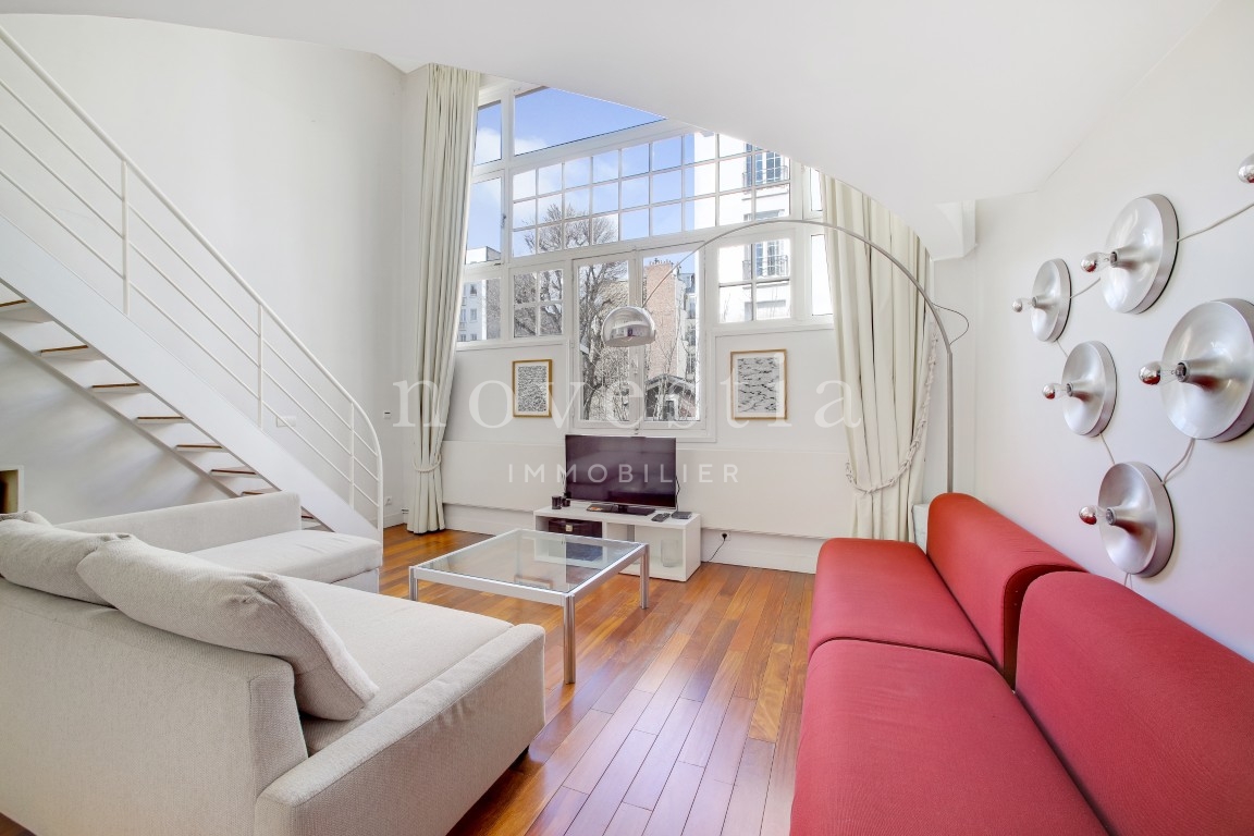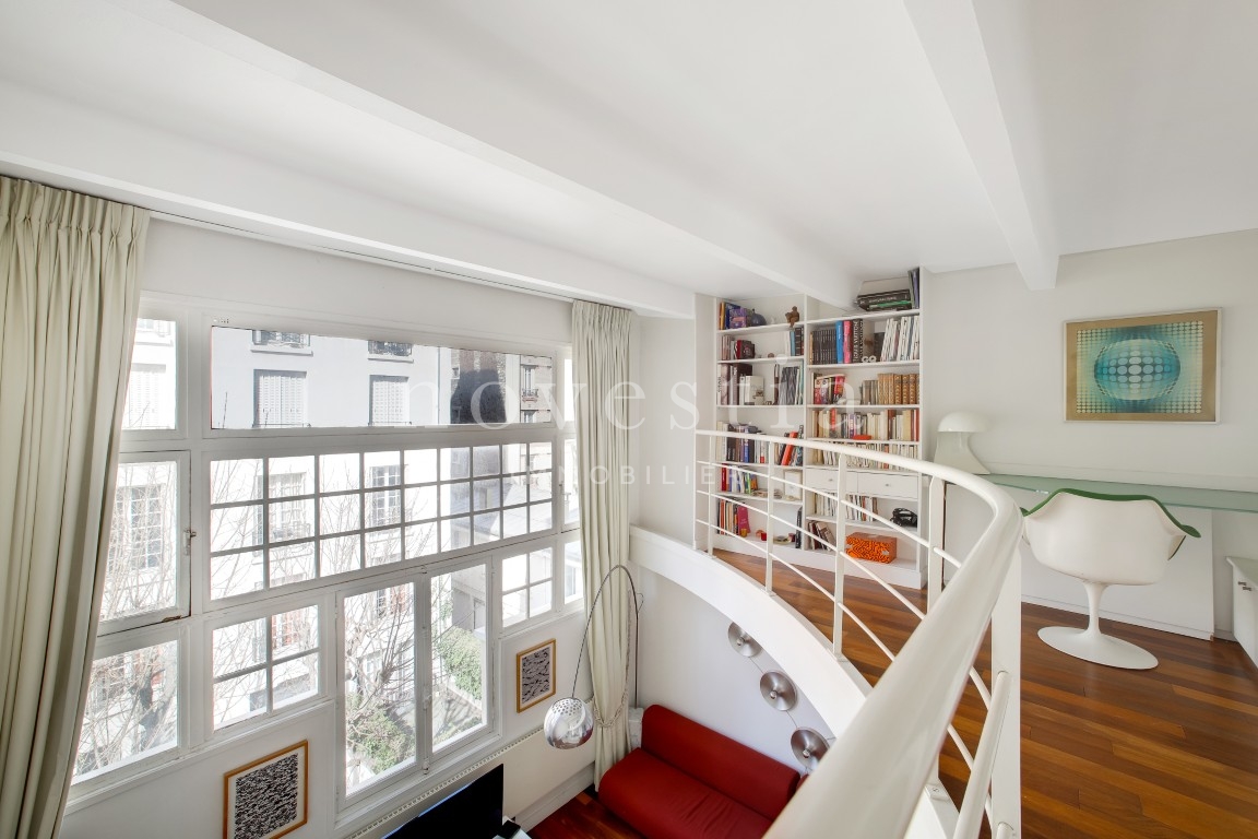 EXCLUSIVITÉ - PARIS XVI - RUE DE PASSY - Au fond d'une allée piétonne et privée, au 2e étage d’un immeuble ancien avec ascenseur, nous vous proposons un appartement de type atelier d'artiste de 52,06 m² Loi Carrez. Cet appartement comprend au premier niveau une entrée avec rangements, un séjour ainsi qu'une cuisine ouverte et équipée. Au second niveau en mezzanine, une chambre avec placards, un coin bureau ainsi qu'une salle de bains avec ses WC. Appartement très lumineux avec sa grande verrière, au calme absolu et au cœur de la rue de Passy. Nombreux commerces et transports à proximité immédiate.