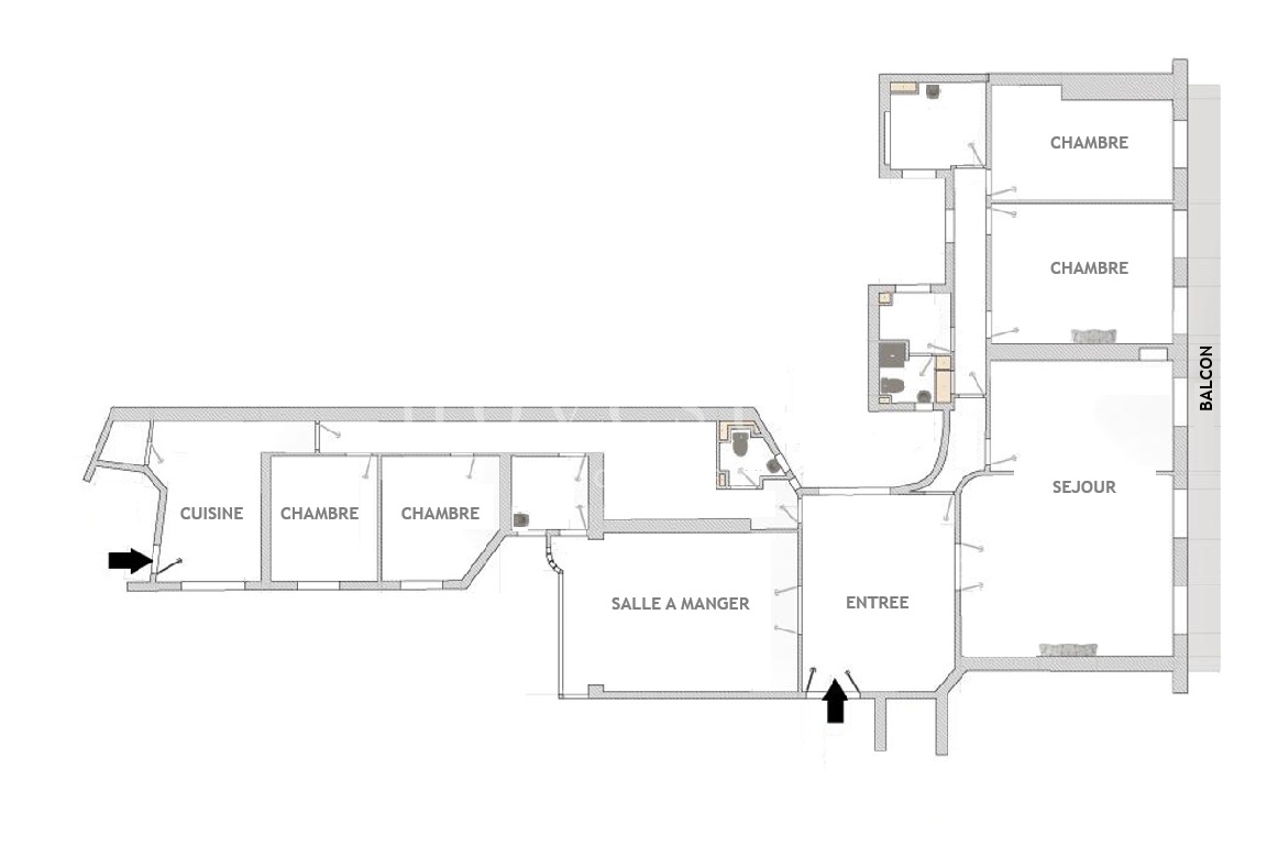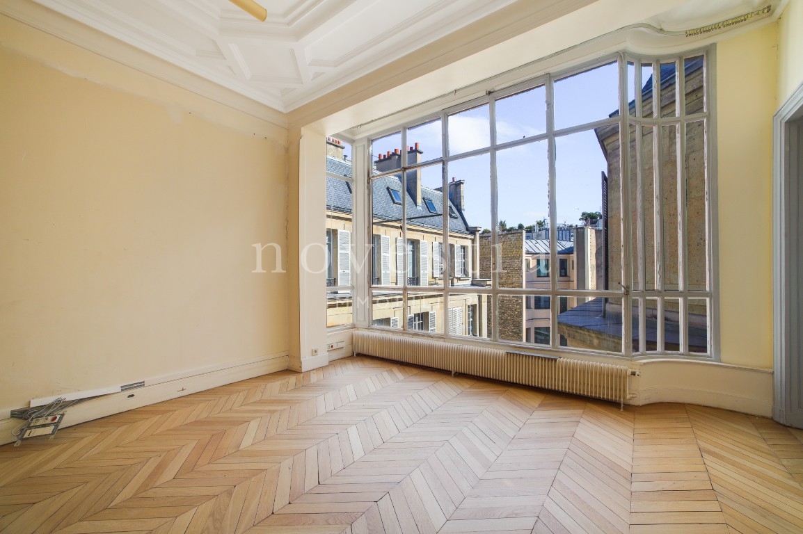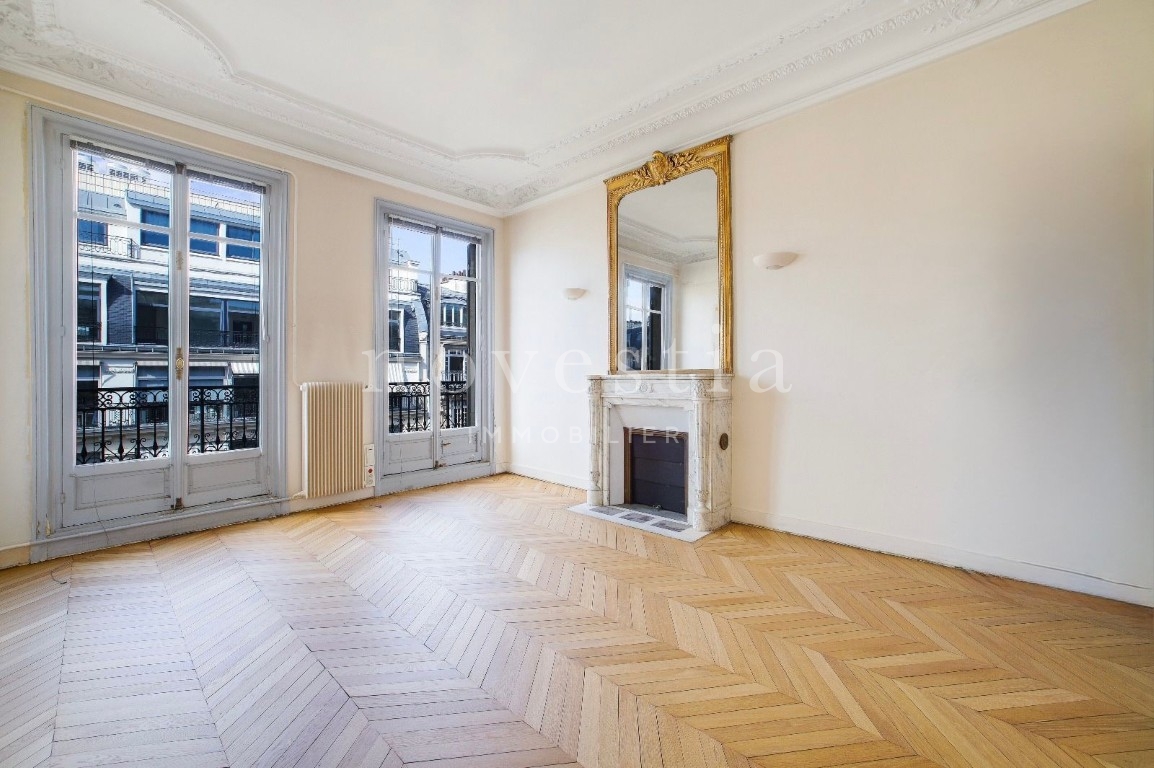 EXCLUSIVITÉ - PARIS VIII - QUARTIER SAINT-PHILIPPE-DU-ROULE - RUE LA BOÉTIE - Au dernier étage noble d’un bel immeuble haussmannien équipé d’un ascenseur, nous vous proposons un magnifique appartement de 225 m² doté d’un long balcon filant. Ce bien comprend un hall d’entrée, un double séjour de 48 m² donnant sur le balcon de 16.70 m², une salle à manger, une cuisine, quatre chambres, une salle de bains indépendante, deux salles d’eau (dont une avec WC) ainsi que des WC indépendants. Appartement très lumineux et traversant avec tout le charme de l'ancien, parquet en point de Hongrie, moulures, cheminées et 3.25 m de hauteur sous plafond. Appartement à rénover entièrement. Une double cave saine de 34 m² complète ce bien. Gardienne à demeure. Transports et commerces à proximité immédiate.