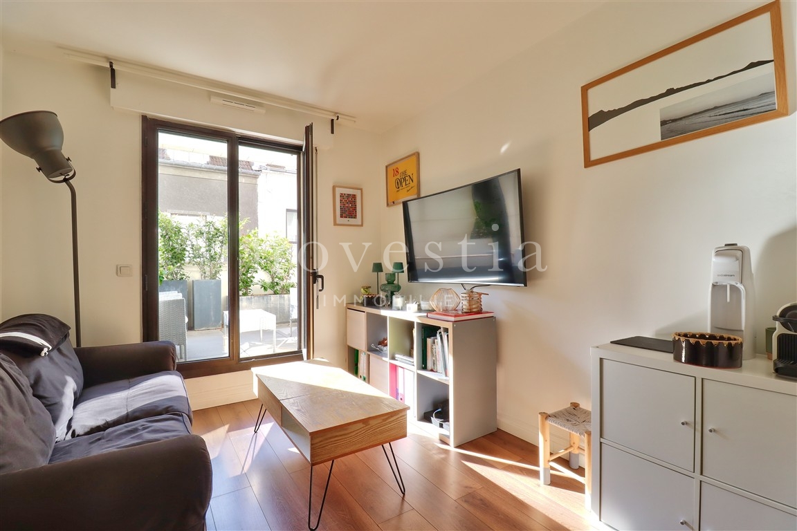 BOULOGNE-BILLANCOURT - QUARTIER PARCHAMP-ALBERT KAHN - Au 1er étage d'un immeuble récent équipé d'un ascenseur, nous vous proposons un appartement de 29,20 m² avec une terrasse de 11 m². Ce bien comprend une entrée avec placard, un séjour donnant sur une terrasse exposée plein sud, un espace cuisine, une chambre ayant également son accès à la terrasse, ainsi qu'une salle de bains avec WC. Terrasse de plain-pied, parquet et rangements. Une cave au sous-sol complète ce bien. Gardien dans l'immeuble. Commerces et transports à proximité.