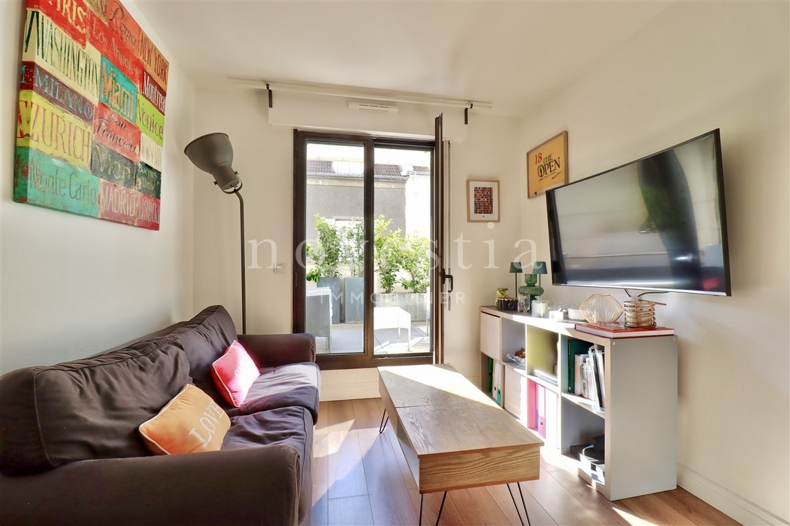 BOULOGNE-BILLANCOURT - QUARTIER PARCHAMP-ALBERT KAHN - Au 1er étage d'un immeuble récent équipé d'un ascenseur, nous vous proposons un appartement de 29,20 m² avec une terrasse de 11 m². Ce bien comprend une entrée avec placard, un séjour donnant sur une terrasse exposée plein sud, un espace cuisine, une chambre ayant également son accès à la terrasse, ainsi qu'une salle de bains avec WC. Terrasse de plain-pied, parquet et rangements. Une cave au sous-sol complète ce bien. Gardien dans l'immeuble. Commerces et transports à proximité.