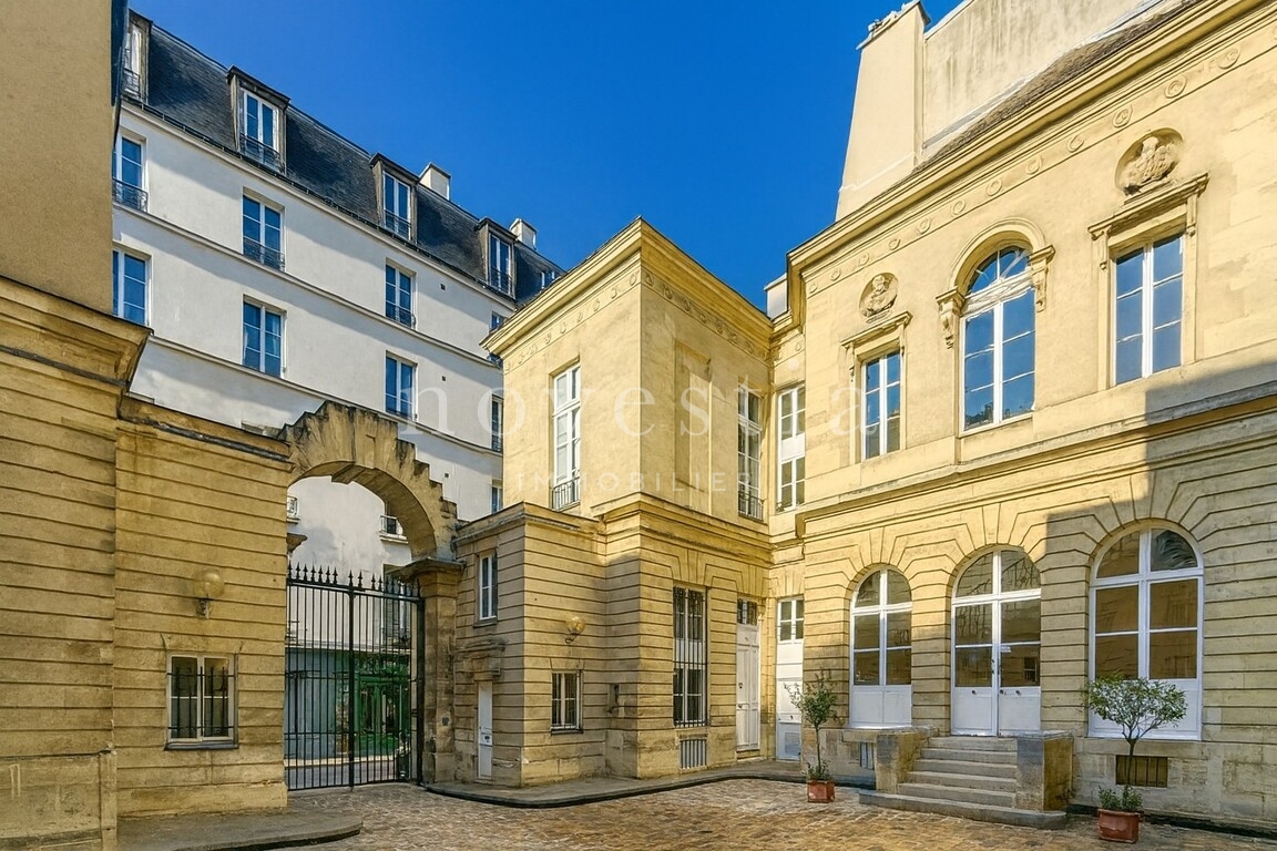 EXCLUSIVITÉ - PARIS 3 - QUARTIER MARAIS - RUE DU PARC ROYAL - Au sein d'une belle copropriété de standing, au troisième étage d'un immeuble modernisé dans les années 1980 avec gardien et ascenseur, NOVESTIA IMMOBILIER vous propose un appartement de 93,06 m² Carrez (93,51 m² au sol). Il comprend : une entrée, un double séjour donnant sur une cour d'honneur, une cuisine dinatoire, une chambre, une salle de douche avec WC, ainsi que des WC séparés. Possibilité de réaménager le plan en deux chambres. Appartement exposé sud, lumineux, calme, bénéficiant de double vitrage et de nombreux rangements. Une cave complète ce bien. Possibilité de parking dans la copropriété.