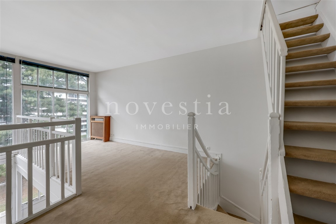 Il se compose d’un vaste séjour cathédral avec espace salle à manger, d’une cuisine semi-ouverte, d’une mezzanine pouvant accueillir chambre, bureau ou coin TV, avec salle de bains, WC et dressing, et enfin, au dernier niveau, d’une chambre mansardée, seule sur son étage, bénéficiant d’une belle luminosité grâce à une large fenêtre de toit.