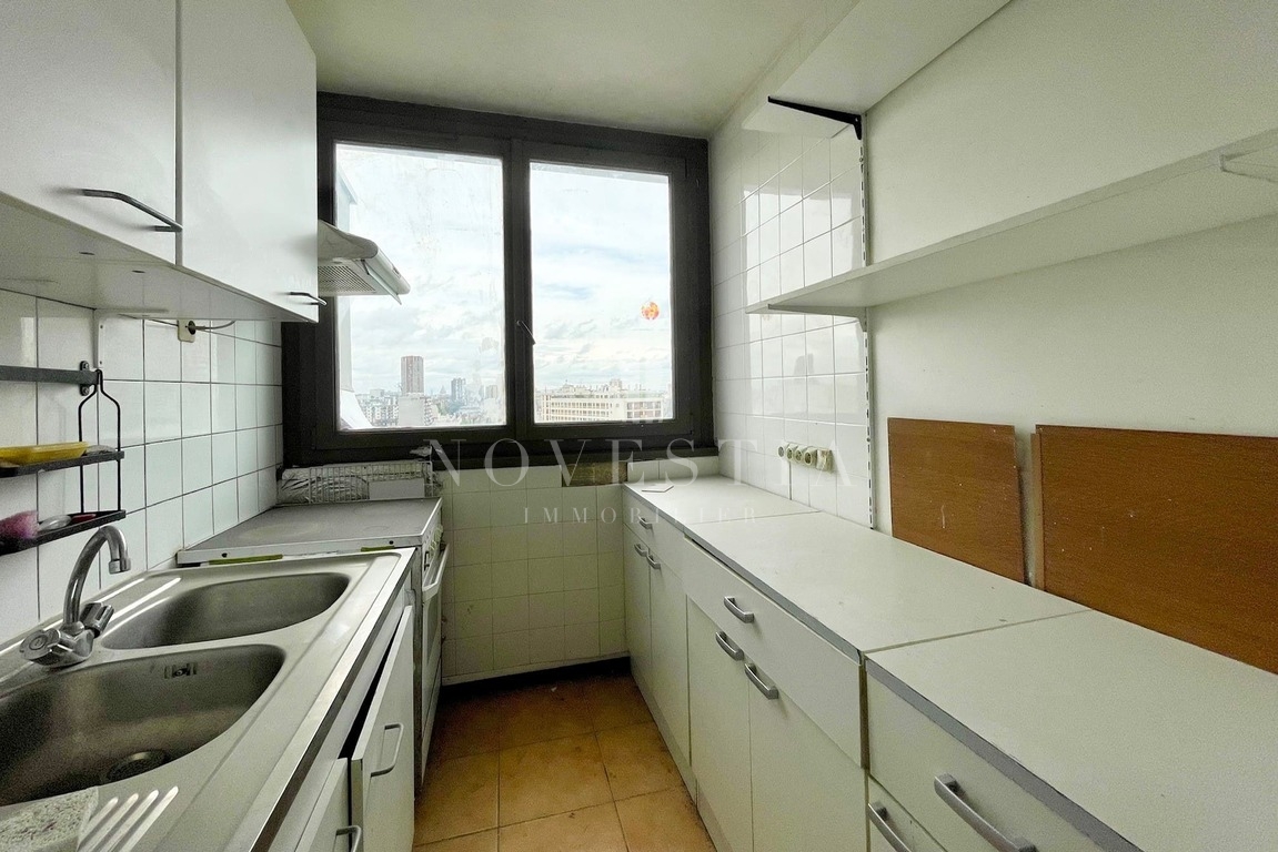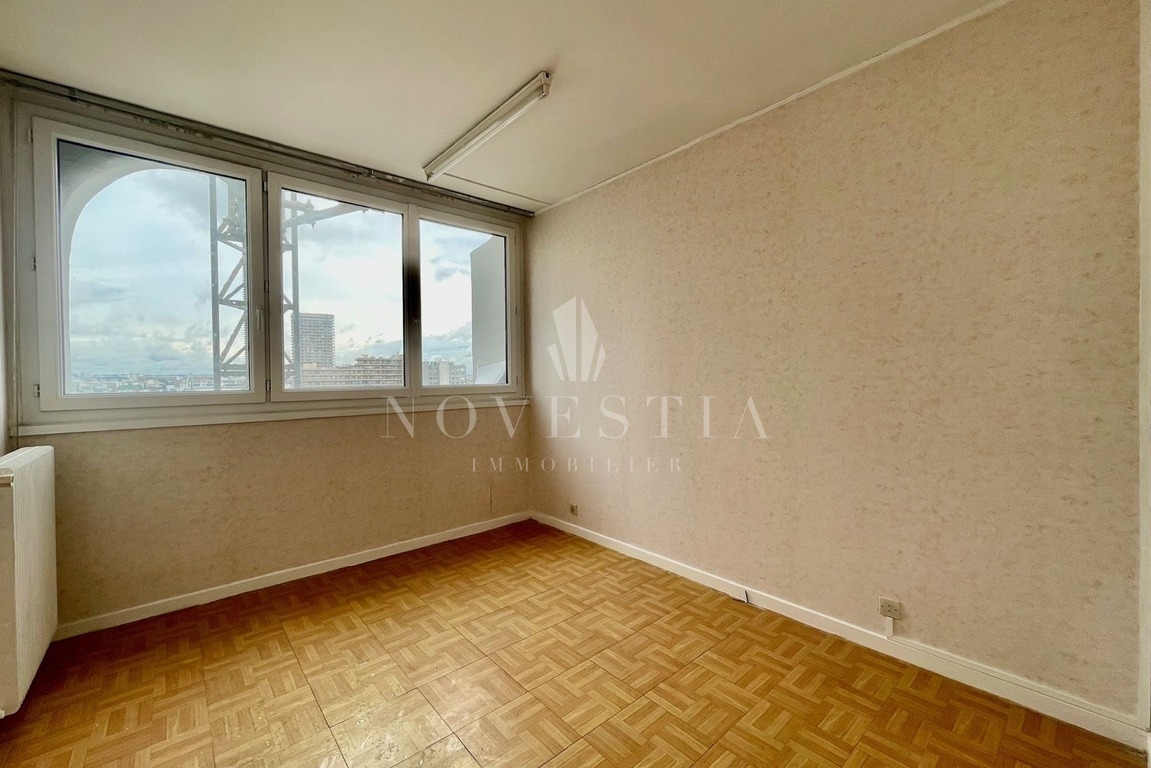 PARIS XIIIe - QUARTIER PORTE DE CHOISY - AVENUE DE CHOISY - TOUR VERDI - Appartement de 3 pièces de 68.27 m² situé au 11e étage d’un immeuble de 1975 avec ascenseur et gardien. Ce bien comprend, une entrée, un séjour, une cuisine séparée, deux chambres, une salle de bains et des wc séparés. Une cave et une place de parking complètent ce bien.