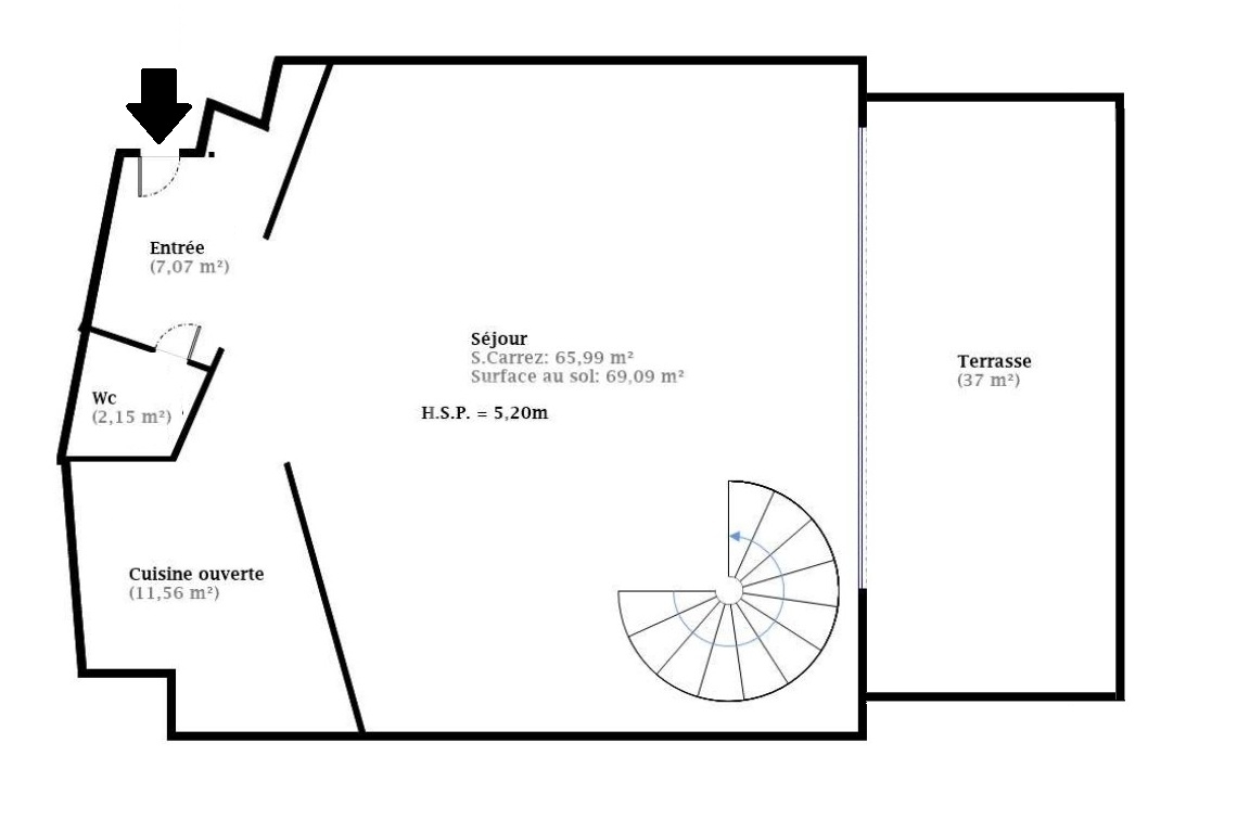 Hauteur sous plafond : 5.2 m