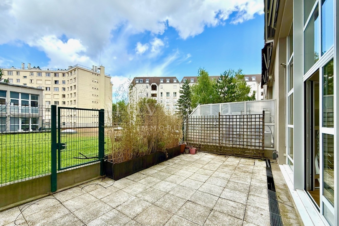 EXCLUSIVITÉ - PARIS 19E - DANS LE QUARTIER DES BUTTES CHAUMONT - À QUELQUES PAS DU QUARTIER DE LA MOUZAÏA - Au premier étage d'un immeuble semi-récent très bien entretenue, un loft en duplex de 150 m² au sol (146.93 m² Carrez) donnant sur une terrasse de 37 m². Ce bien hors normes comprend une entrée, un vaste double séjour de 66m² exposé plein ouest avec une hauteur sous plafond de 5.20 mètres et bénéficiant d'une fenêtre magistrale style atelier d'artiste et d'un accès à une terrasse ensoleillée donnant sur un jardin, une cuisine américaine, ainsi qu'un wc invités. À l'étage se trouvent deux chambres dont la première avec une vaste salle de bains équipée de wc, la seconde avec sa salle d'eau également équipée de WC, ainsi qu'un grand dressing indépendant. Appartement exceptionnel, avec du parquet, du double vitrage, sans vis-à-vis immédiat, et de nombreux rangements. Transports à proximité. Gardienne. En supplément du prix : Une double place de parking dans l'immeuble au prix de 31.200€ FAI.