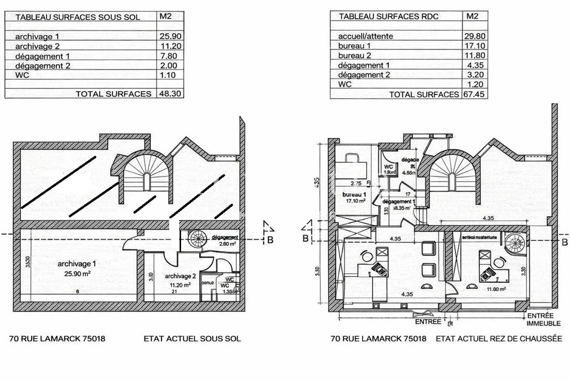 PARIS 18 - RUE LAMARCK - À deux pas du métro Lamarck-Caulaincourt, un local commercial sur rue de 115,75 m² situé au rez-de-chaussée d’un immeuble ancien. La surface est de 67,45m² au rez-de-chaussée et de 48,30 m² au sous-sol). Ce local comprend au rez-de-chaussée, une entrée, trois bureaux et des toilettes. Au sous-sol se trouvent un bureau, des toilettes et une réserve. Honoraires d'agence en complément à 4% HT calculés sur le prix de vente.