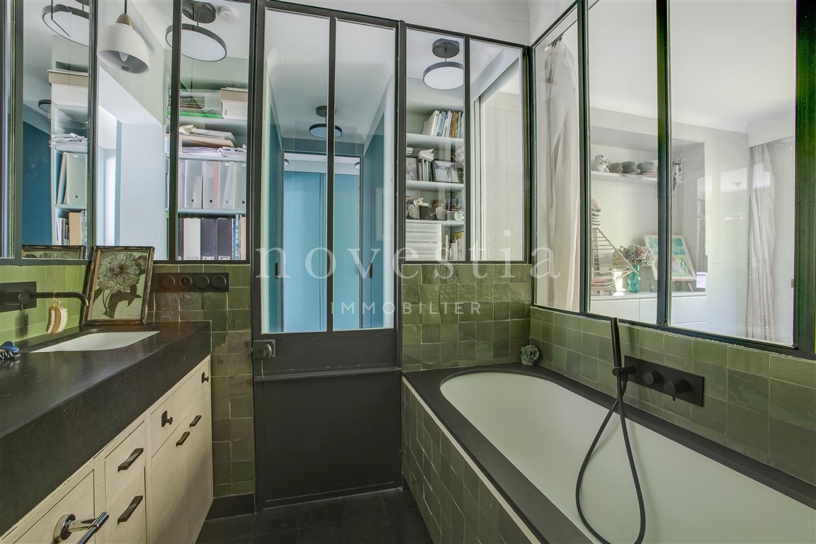 Un bien rare dans un immeuble sécurisé de standing, alliant rénovation contemporaine, calme absolu, véranda très lumineuse et vaste jardin paysagé, au cœur d’un quartier très prisé du 16eme arrondissement.