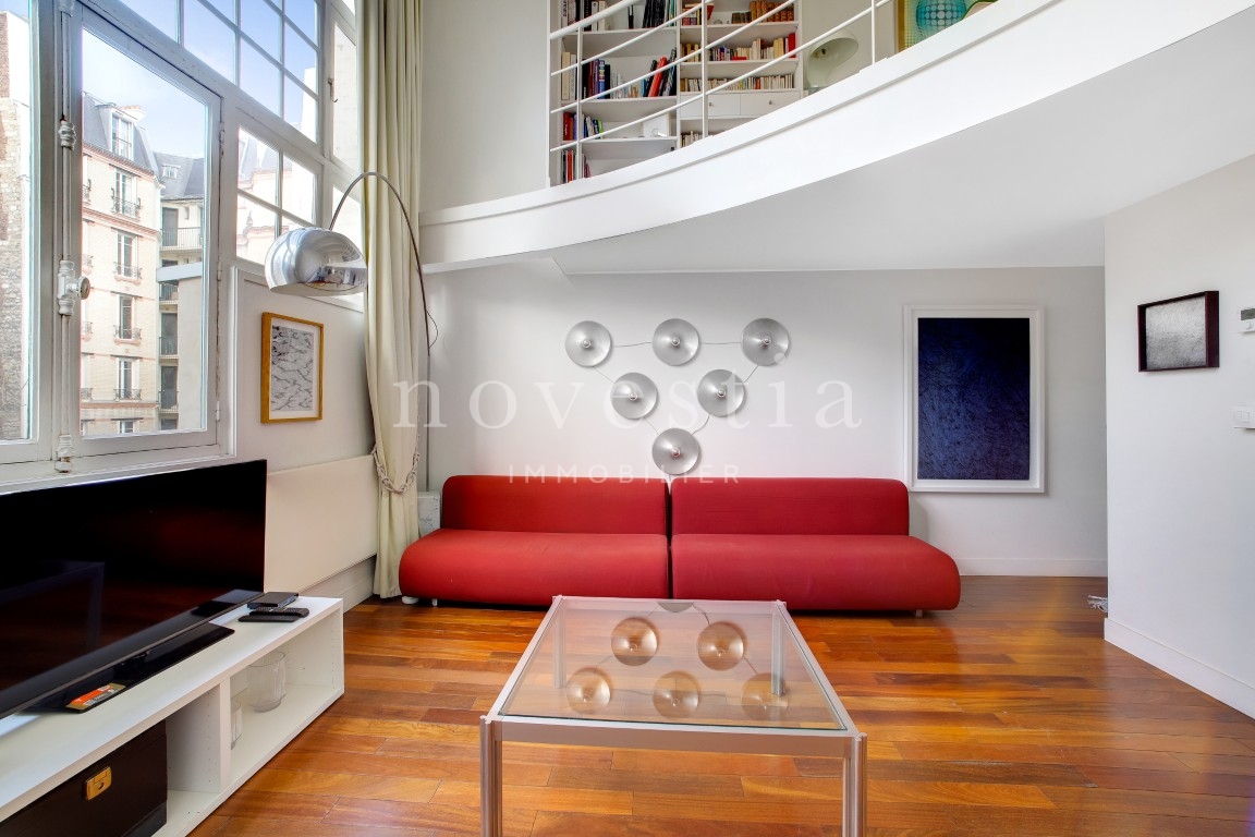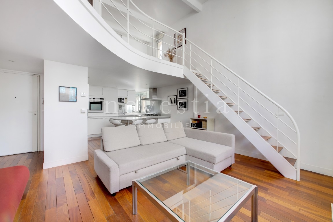 EXCLUSIVITÉ - PARIS XVI - RUE DE PASSY - Au fond d'une allée piétonne et privée, au 2e étage d’un immeuble ancien avec ascenseur, nous vous proposons un appartement de type atelier d'artiste de 52,06 m² Loi Carrez. Cet appartement comprend au premier niveau une entrée avec rangements, un séjour ainsi qu'une cuisine ouverte et équipée. Au second niveau en mezzanine, une chambre avec placards, un coin bureau ainsi qu'une salle de bains avec ses WC. Appartement très lumineux avec sa grande verrière, au calme absolu et au cœur de la rue de Passy. Nombreux commerces et transports à proximité immédiate.